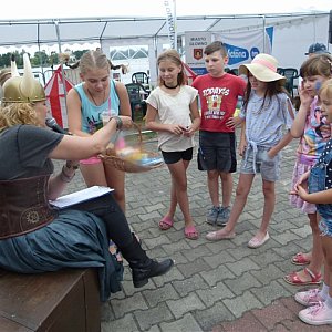 Niespodzianki dla dzieci przygotował też Klub Karate Kyokushin Nintai (próby rozbijania desek, skręcanie balonikowych zwierzaków, ogromne bańki mydlane).