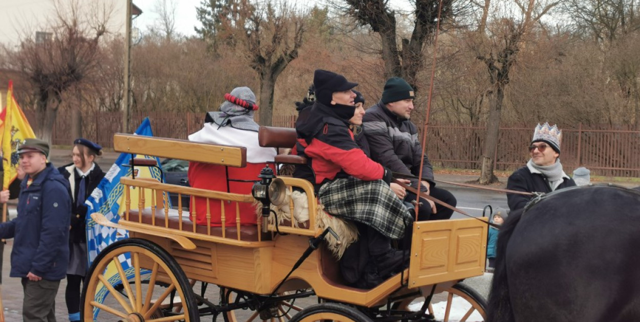 Orszak wyruszył o godz. 13:00 tuż po Mszy Św. w kościele p.w Świętego Jakuba. Uczestnicy przemarszu ubrani w złote papierowe korony symbolizujące dzisiejsze święto szli za bryczką, na której siedzieli trzej królowie.