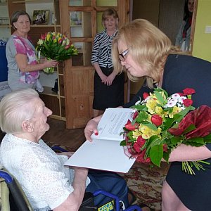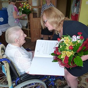 W dniu setnych urodzin odwiedził ją burmistrz miasta Grzegorz Janeczek, a także Bożena Fabiszewska z Łódzkiego Urzędu Wojewódzkiego.