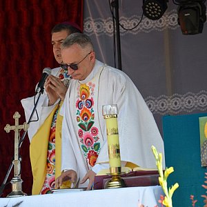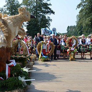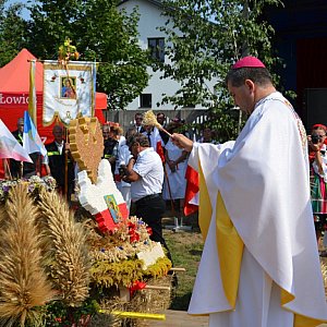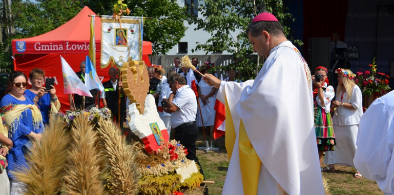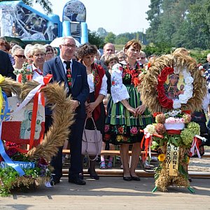 Zachwycały też dożynkowe wieńce przygotowane licznie przez sołectwa. Stanęły one przed sceną główną, na której bp Wojciech Osial i proboszcz parafii katedralnej ks. Robert Kwatek, sprawowali mszę św. dziękczynną za tegoroczne plony. W trakcie jej trwania wieńce zostały poświęcone.