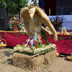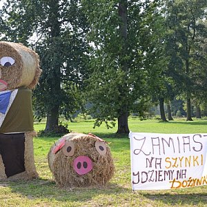 O tym, że w miejscowości obchodzone są dożynki informowały, ustawione przy głównej drodze, słomiane figury z balotów słomy. Przyjezdni goście mogli podziwiać m.in. słomianego kota, gospodarza i jego świnki.