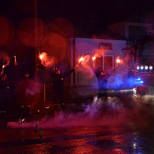 Strażacy przywitali nowy pojazd w bazie, odpalając race i fajerwerki. Wraz z nimi samochód witali mieszkańcy, wójt gminy Kiernozia Beata Miazek, prezes WFOŚiGW w Łodzi Wojciech Miedzianowski, radny Sejmiku Województwa Łódzkiego Waldemar Wojciechowski i wiele innych osób.