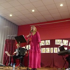 Recital zorganizowano z okazji Dnia Matki i Ojca, dlatego lubiana aktorka podzieliła się z mieszkańcami Łyszkowic wspomnieniami z dzieciństwa oraz rodzinnymi historiami z przeszłości.