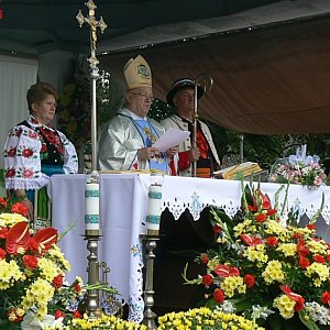 Tu przed południem niebo wypogodziło się, a plac przy kaplicy z obrazem Matki Bożej Domaniewickiej wypełnił się wiernymi, zarówno mieszkańcami parafii Domaniewice, jak i pielgrzymami m.in. z Głowna czy Dmosina. Homilię w czasie odpustowej mszy św. wygłosił ks. bp Józef Zawitkowski. Nie zabrakło w niej odniesień do chłopskiego pochodzenia hierarchy i jego umiłowania dla ludowej tradycji i obrzędowości. Kaznodzieja sięgnął również po cytaty z literatury, w tym "Chłopów" W.S. Reymonta, by w finale nawiązać do dzisiejszej rzeczywistości społeczno-politycznej, w tym zbliżających się wyborów parlamentarnych.