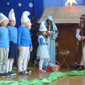 W przedstawieniu wzięli uczniowie klas I-VIII oraz przedszkolaki, które zaśpiewały "Bosego pastuszka". Jasełka wprowadziły publiczność w świat baśni, a jednocześnie przeniosły do Betlejem, do miejsca, w którym narodził się Jezus. Do żłóbka przyszły postacie z bajek, tj. Dziewczynka z zapałkami, Jaś i Małgosia, Pinokio, Czerwony Kapturek, Smerfy, Pszczółka Maja, Sierotka Marysia i Kopciuszek.