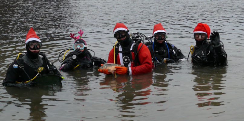 Zwolenniczkom eliminowania z diety mięsa i zagorzałym obrończyniom praw zwierząt bardzo spodobał się zwyczaj ratowników z Łowicza, dlatego bez wahania dały się namówić na dzisiejsze wigilijne nurkowanie w Guźni. Tym razem nurkowie mieli ze sobą aż trzy ryby, które wypuścili po zejściu pod wody akwenu.