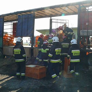 Jak podkreślił komendant Szeligowski młody kierowca wydostał się z pojazdu i wszystko wskazuje, że nic poważnego mu się nie stało. Strażacy kończą obecnie przeładunek kurczaków na zastępczą naczepę, utrudnienie na drodze zakończą się prawdopodobnie ok. godz. 10.