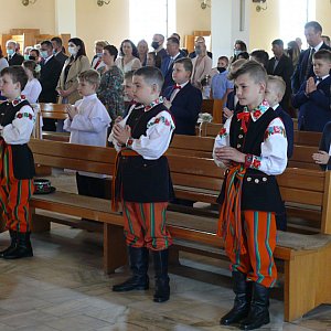 Mszom świętym przewodniczył proboszcz ks. Wiesław Wronka, który w czasie ich trwania skierował słowa nie tylko do dzieci, ale przede wszystkim do rodziców, aby trwali przy Kościele, dając świadectwo dzieciom, bo dom i rodzina kształtują młodego człowieka i jego postawy w dorosłym życiu.