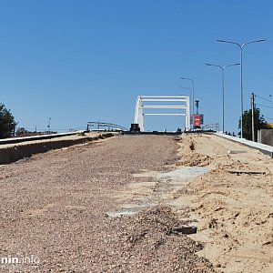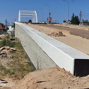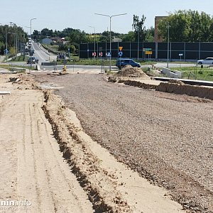 Na nasypie od ul. Warszawskiej, który zaczął być budowany dopiero w tym roku, wykonano oczepy zwieńczające mur oporowy, zwieziono i rozplantowano też znaczną ilość kruszywa zarówno pod chodniki jak i jezdnię - w pasie drogowym nawieziono tłuczeń - jednak to nie jest nic nowego, tłuczeń nawożono już w połowie czerwca, ciągle nie ustawiono od tej strony obrzeży krawężnikowych, nie są więc wykonywane chodniki a można byłoby sądzić, że po zagęszczeniu kruszywa prace te można było realizować. Obraz placu budowy każe twierdzić, że prace po prostu stoją w miejscu!