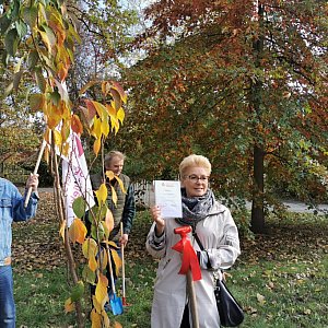 Każdy z obecnych otrzymał od prezes Kucharskiej certyfikat potwierdzający uczestnictwo w uroczystości, na którym znajdowała się także informacja, któremu drzewu patronuje. Każdy z patronów dokonał przy tym symbolicznego zasypania ziemi pod uprzednio zasadzonym drzewem. Nie zabrakło także innych symbolicznych akcentów, gdyż pod każdym drzewem znalazł się grosik na szczęście.