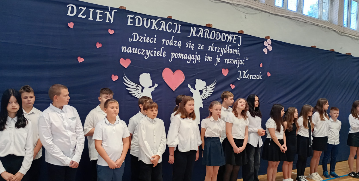 Dziś (11 październik) w Szkole Podstawowej nr 4 w Łowiczu odbyła się uroczystość z okazji obchodów Dnia Edukacji Narodowej, która przypada na 14 października. Z tej okazji uczniowie przygotowali spektakl opatrzony wierszami i utworami śpiewanymi przez szkolny chór.