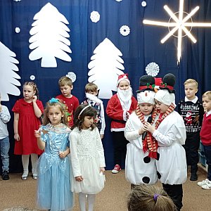 Spektakl, poświęcony tradycjom świątecznym, opowiadał o świętym Mikołaju, prezentach, rodzinnym cieple i zimowym klimacie. Nie zabrakło znanych kolęd i świątecznych piosenek, które mali artyści wykonali z ogromnym zaangażowaniem..