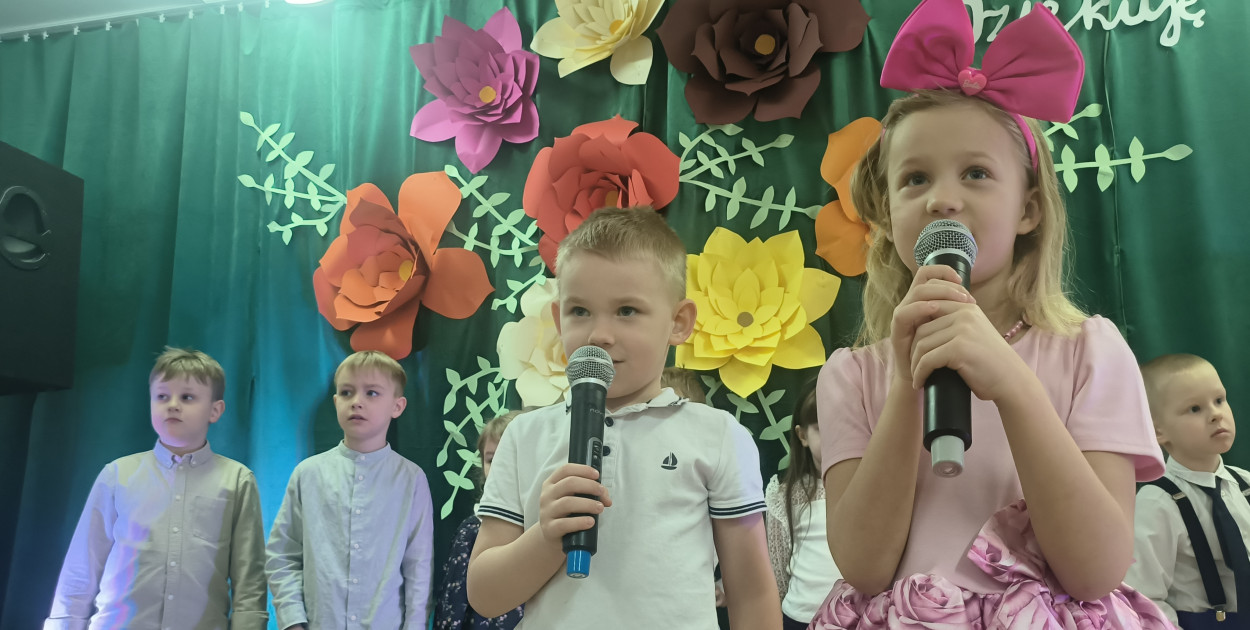 Pełne entuzjazmu 5-latki przygotowały pod okiem Pań: Izabeli Bobowskiej i Ludwiki Bończak wiersze, piosenki oraz układy taneczne dając pokaz swoich artystycznych talentów.