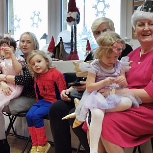 Dziś z babciami i dziadkami bawiły się dzieci 4-6-letnie z integracyjnej grupy "Zajączki". Nie tylko dzieci przebrały się za bajkowe postacie, ale także część seniorów skorzystała z sugestii przedszkola, aby założyć przebranie lub jakąś karnawałową ozdobę. Kolejne bale w grupach zaplanowane są na przyszły tydzień.