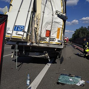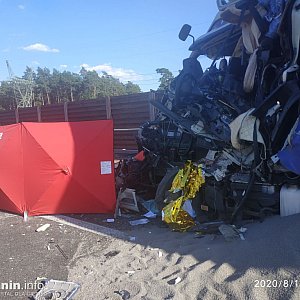 Na pasie w kierunku Warszawy zderzyły się ze sobą samochody ciężarowe Volvo i Scania oraz osobowy Fiat Tipo. W wyniku zdarzenia śmierć na miejscu poniósł kierujący ciężarówką Volvo 36-letni mieszkaniec województwa podlaskiego. Inne osoby w tym wypadku nie ucierpiały.