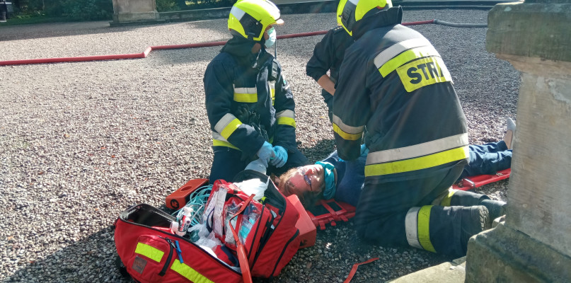 Ewakuacja z drugiego piętra, udzielenie pierwszej pomocy, wyniesienie cennych przedmiotów - to wszystko działo się dziś, 28 września na terenie nieborowskiego pałacu.