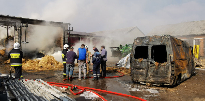 Ponadto spaleniu uległ opryskiwacz i ok. 200 balotów słomy. Na szczęście ogień nie dotarł do sąsiednich budynków, w których znajdowały się krowy. Nie było też konieczności ewakuowania zwierzęta.