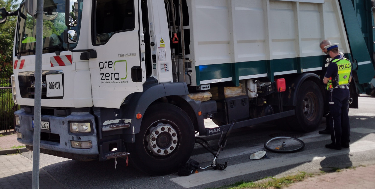 Do poważnego wypadku doszło w piątek, 7 czerwca, ok. godz. 9.00 na ul. Łęczyckiej w Łowiczu, gdzie rowerzystka została potrącona przez śmieciarkę firmy PreZero.