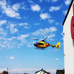 Do poszkodowanej zadysponowano śmigłowiec LPR, którym kobieta została przetransportowana do szpitala w Łodzi. Lądowisko dla śmigłowca wyznaczono na łąkach przy markecie Dino.