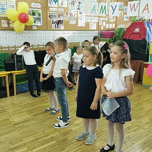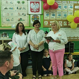 Po przedstawieniu przyszła pora na bardziej emocjonalny fragment uroczystości - pożegnanie grupy starszaków, którzy we wrześniu wyruszają do szkoły podstawowej. Dyrektor Jolanta Kępka, podziękowała rodzicom za cudowne lata współpracy między rodzicami, a przedszkolem. Podkreśla, że jak dotąd nie miała tak wesołej grupy dzieci i naprawdę boli ją rozłąka z nimi. Wzruszona była także p. Kluszczyńska, wychowawczyni Biedronek. Pożegnała dzisiaj swoją pierwszą grupę, którą zajmowała się od samego początku przedszkola.