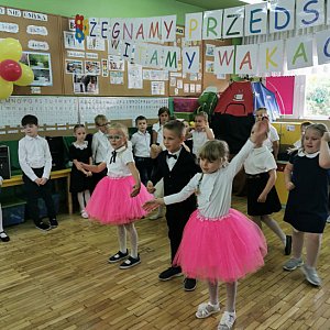 Dzisiaj na Górkach dużo wzruszenia i śmiechu. Dwie najstarsze grupy - ,,Biedronki" i ,,Muchomorki" zorganizowały przedstawienie z okazji zakończenia roku szkolnego.
