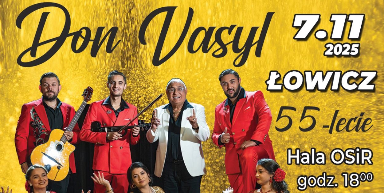 Jeśli uwielbiasz muzykę i tańce na żywo to mamy dla Ciebie doskonałe wiadomości!Już 7 listopada w Hali OSiR w Łowiczu, odbędzie się wyjątkowy, sentymentalny koncert jubileuszowy "Od Czardasza do Przeboju" w wykonaniu Don Vasyla z Rodzinnym Zespołem oraz pięknymi tancerkami. Król Muzyki Cygańskiej DON VASYL występuje na scenie już 55 lat! Oprócz piosenek "Ore, Ore" czy "My cyganie" usłyszymy największe przeboje piosenkarza takie jak: "Jedno jest niebo dla wszystkich", "Tańcz ze mną moje życie", "Ja już wygrałem" i inne.