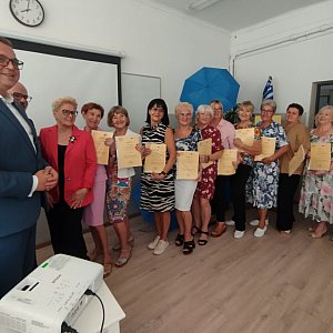 We wspomnianym okresie miały miejsce trzy wyjazdy, z których skorzystało w sumie 37 osób. Każda z nich otrzymała podczas dzisiejszego spotkania certyfikat potwierdzający nabyte podczas zagranicznych wykładów kompetencje. Uczestnikom wyjazdy certyfikaty wręczali burmistrz Mariusz Siewiera oraz jego zastępca Jacek Kłos.