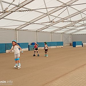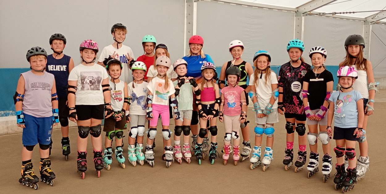 Pomimo upalnej pogody i wysokiej temperatury panującej na hali, dzieci licznie uczestniczyły w zajęciach. Ćwiczenia są dostosowane do poziomu uczestników – zarówno początkujących, jak i tych, którzy jeżdżą na rolkach już od dłuższego czasu.
