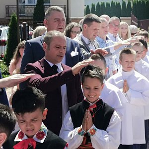 Następnie dzieci wyszły ze świątyni, ustawiły się ponownie w rzędach i gdy gdy ksiądz poprosił o to rodziców, zostały przez nich pobłogosławione, najpierw przez ojców, potem przez matki - po czym powtórnie, procesyjnie, weszły do świątyni na swe pierwsze tak pełne spotkanie z Chrystusem.
