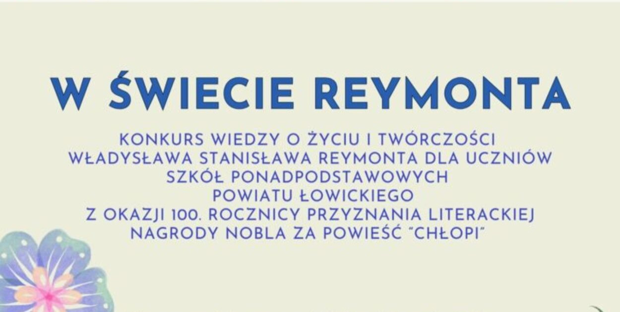 Zespół Szkół Ponadpodstawowych nr 3 w Łowiczu zaprasza do udziału w konkursie wiedzy o życiu i twórczości Władysława Stanisława Reymonta z okazji 100. rocznicy przyznania Literackiej Nagrody Nobla za powieść „Chłopi”.
