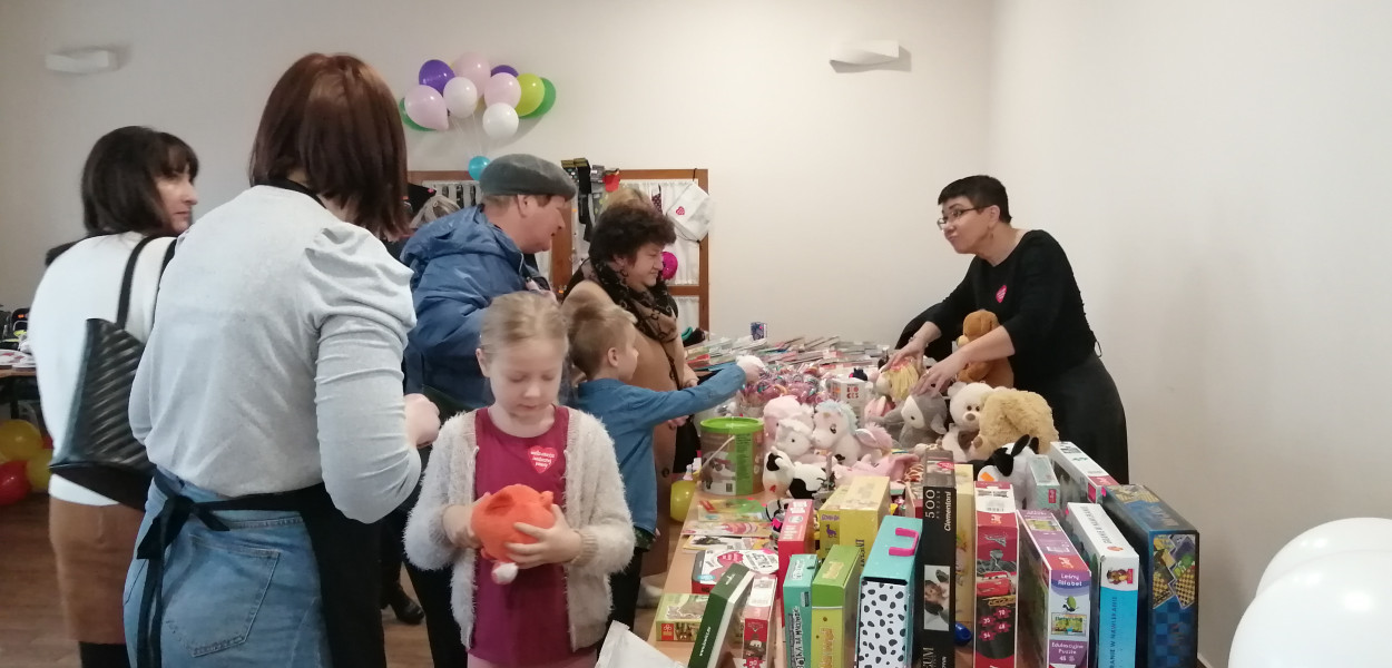 Obejrzeliśmy także występy dzieci ze Szkoły Podstawowej. Produkty, które zostały wystawione do sprzedaży w formie kiermaszu i licytacji zostały przygotowanie przez panie z KGW, rodzice dzieci oraz strażacy.