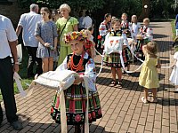 Osiem wieńcow dozynkowych przyniesiono z ośmiu sołectw parafii katedralnej w Łowiczu na uroczystą Mszę św. dożynkową w katedrze.